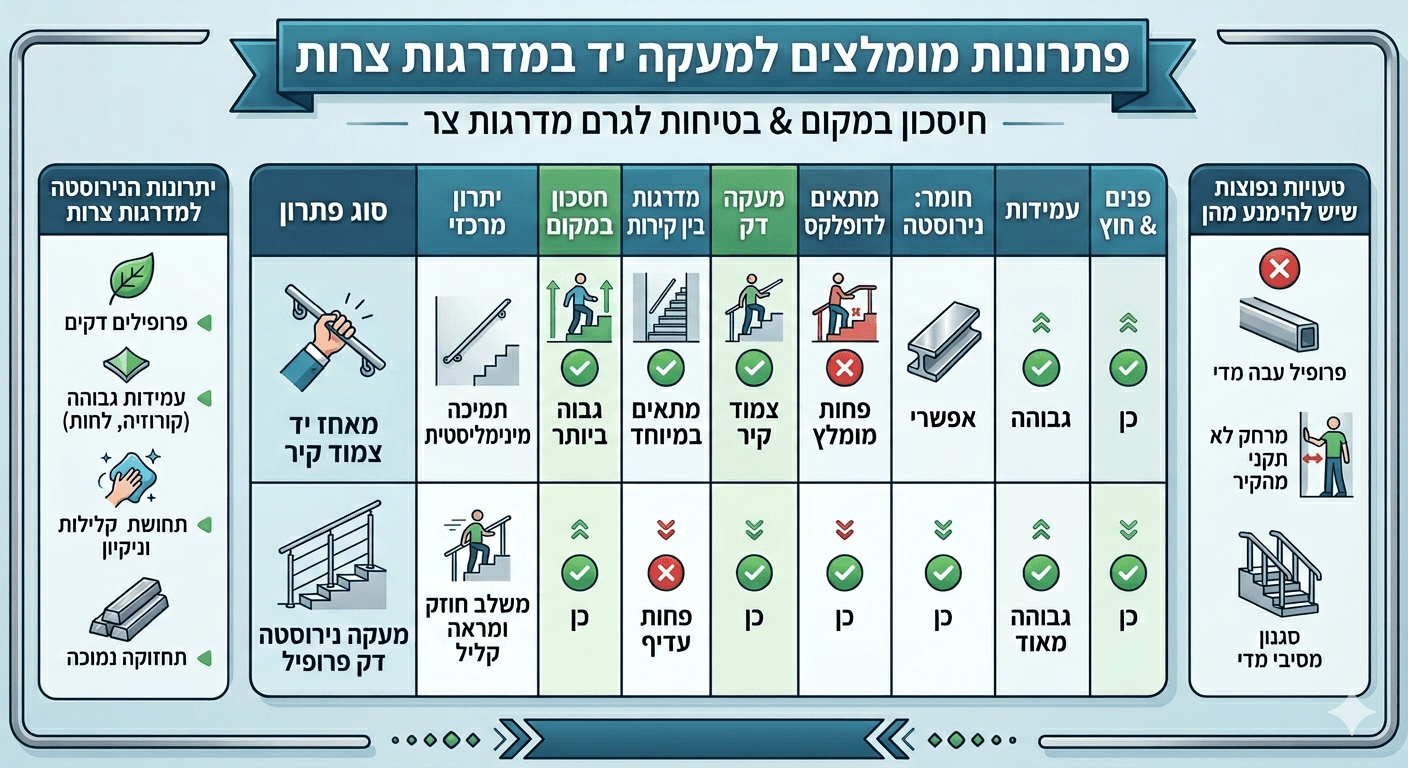מעקה יד למדרגות צרות - פתרונות מומלצים